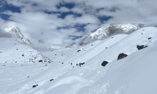 The trail ascends gradually along the moraine of the Khumbu Glacier. As you progress, you’ll encounter memorials for climbers who perished on Everest, as well as numerous yaks grazing in the pasture. From Thokla Pass, you’ll be treated to panoramic views of Tawche, Cholache, Ama Dablam, Thamserku, Pumari, Nuptse, and Kusumkangkaru mountains.